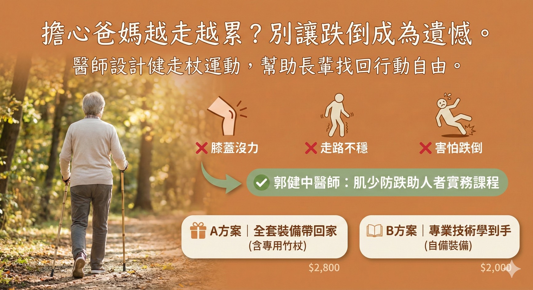 用健走杖打敗肌少症,翻轉輪椅文化